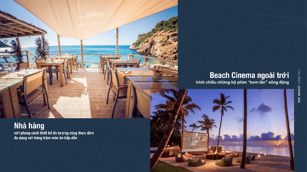 Du khách có thể thoải mái tắm ở bể bơi vô cực tầm nhìn hướng ra biển, xem những bộ phim hấp dẫn ở rạp chiếu phim ngoài trời, thưởng thức những món hải sản tươi sống tại hệ thống nhà hàng sang trọng, rèn luyện thể chất ở phòng tập gym. Nếu du khách muốn thử trải nghiệm những trò chơi cảm giác mạnh có thể đến với khu thể thao bãi biển để lướt sóng, chơi cano nước, dù lượn trên cao…The Maris Vũng Tàu còn có khu trung tâm thương mại sành điệu, sang trọng thỏa mãn nhu cầu của những tín đồ mua sắm. Ngoài ra du khách còn được hưởng thụ những tiện ích ngoại khu thú vị của biển Vũng Tàu. Mọi nhu cầu từ cơ bản cho đến cao cấp đều sẽ được tìm thấy ở dự án Vũng Tàu The Maris.