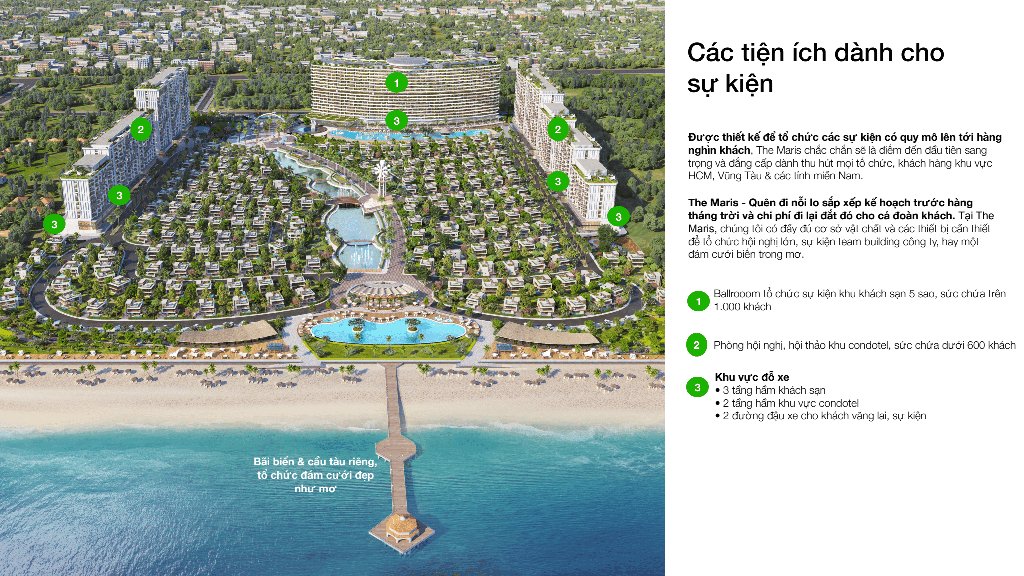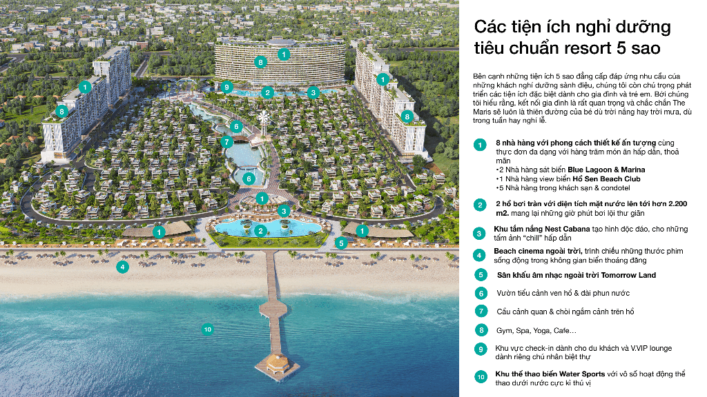- The Maris một điểm đến đủ xa để riêng tư, sở hữu bải biển riêng để du khách được đắm chìm trong không gian sang trọng và đẳng cấp của một quần thể Resort 23 ha tiêu chuẩn 5 sao ngay giữa trái tim thành phố.